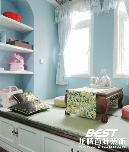 飄窗地處家中黃金位置,可觀賞室外美麗風(fēng)景,也可享受充足陽光。千萬不要浪費了這塊寶地!改造成迷你茶室是個不錯的選擇。