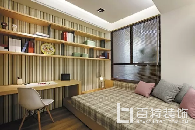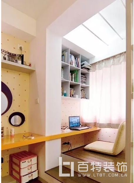 這間書房在汕頭住宅裝修設(shè)計(jì)中就是利用陽臺(tái)打造的。陽臺(tái)雖小又如何,照樣做一整排的榻榻米,還能擺放一個(gè)轉(zhuǎn)角書桌,強(qiáng)大!